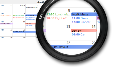 The CalendarView offers smart features such as Printing if you need to print out the current display. Smart resizing to always adapt to the current window size. Animated scrolling and an integrated Scrollbar that disappears automatically when not needed.