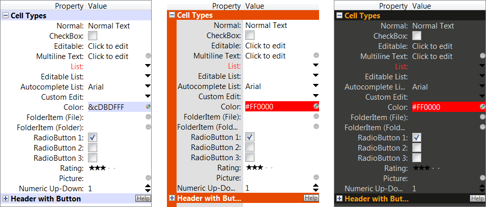 3 The Property Listbox includes several cell types: