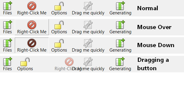 Each button has its own Name, Caption, Icon and HelpTag. The buttons can individually aligned to the left, center or right.