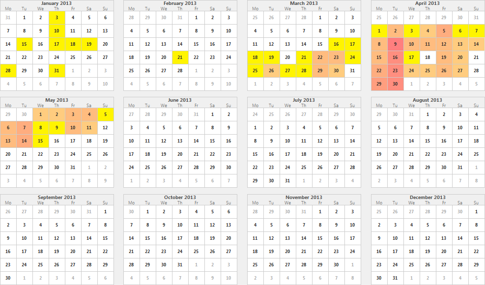 The CalendarView offers smart features such as Printing if you need to print out the current display. Smart resizing to always adapt to the current window size. Animated scrolling and an integrated Scrollbar that disappears automatically when not needed.