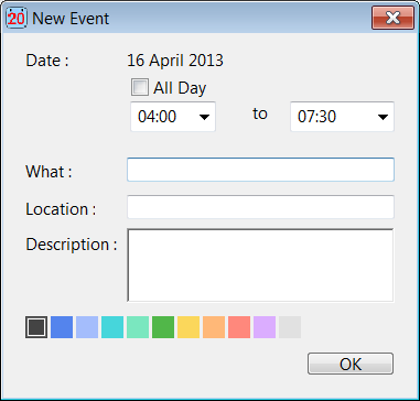 Re-use the provided New Event window in your applications and easily adapt it to your requirements.