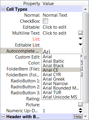 3 The Property Listbox includes several cell types: