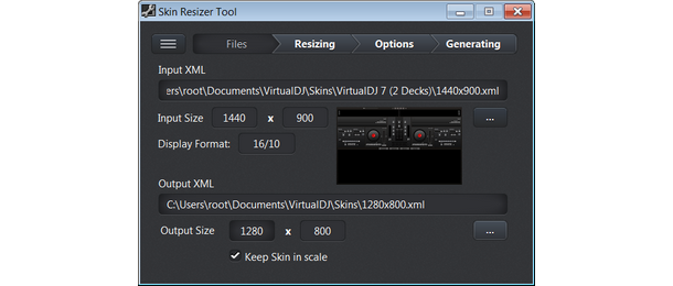 Skin Resizer Tool will resize and adapt any VirtualDJ Skin to your screen in only 3 steps. Your favorite Skin will fully adapt to your screen.